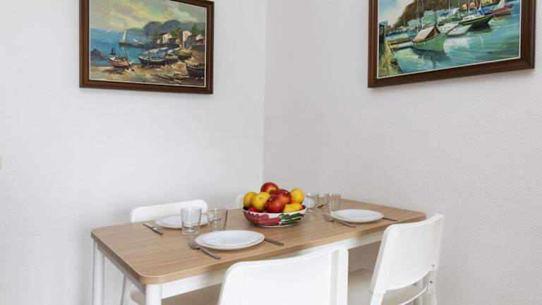 Die Ferienwohnung verfügt über zwei Schlafzimmer, ein Wohnzimmer mit TV, eine gut ausgestattete Küche mit Kühlschrank und Geschirrspüler sowie ein Badezimmer mit Badewanne. Ein Babybett ist auf Anfrage verfügbar.