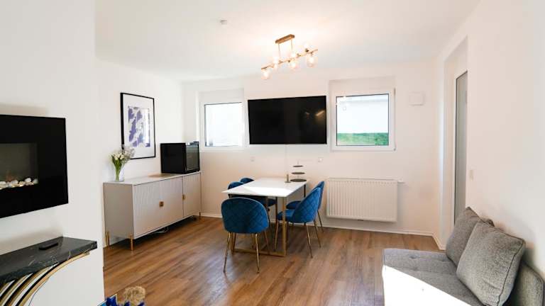 Die Ferienwohnung verfügt über 1 Schlafzimmer, ein Wohnzimmer, ein Flachbild-TV sowie eine gut ausgestattete Küche mit Kühlschrank und Geschirrspüler. Zudem gibt es 1 Badezimmer mit Dusche. Handtücher und Bettwäsche werden bereitgestellt.