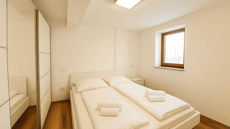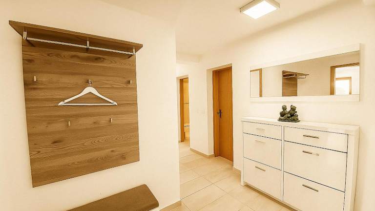 Die Ferienwohnung besteht aus zwei Schlafzimmern, einem Wohnzimmer und einer voll ausgestatteten Küche mit Kühlschrank und Kaffeemaschine. Zudem gibt es ein Badezimmer mit Dusche und Haartrockner. Handtücher und Bettwäsche werden bereitgestellt.