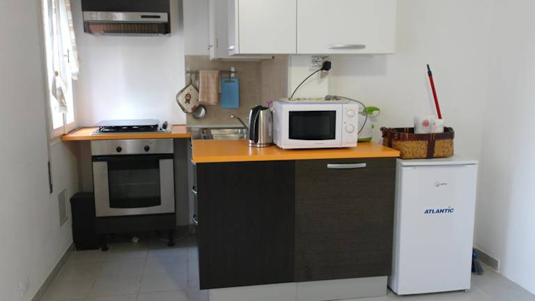 Die Ferienwohnung verfügt über eine voll ausgestattete Küche mit einem Kühlschrank und einer Kaffeemaschine, was die Zubereitung eigener Mahlzeiten ermöglicht.