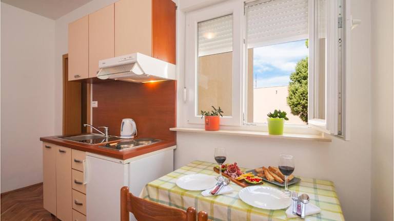 Das Apartment Podstrana 5 bietet eine voll ausgestattete Küche, in der Sie Ihre eigenen Mahlzeiten zubereiten können. Alternativ können Sie auch die Restaurants in der Umgebung erkunden und lokale Spezialitäten genießen.