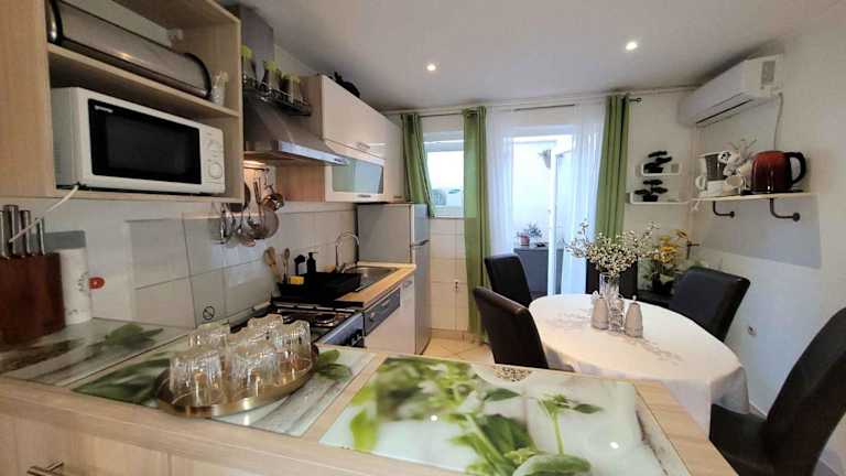 Das Apartment Pula 15 bietet 2 gemütliche Schlafzimmer und eine praktische Küchenzeile. Die Küchenzeile ist mit einem Kühlschrank, einem Backofen und einer Kaffeemaschine ausgestattet, so dass Sie Ihre eigenen Mahlzeiten zubereiten können. Das Apartment verfügt auch über einen Fernseher für Ihre Unterhaltung. Kostenloses WLAN ist in der Unterkunft verfügbar, so dass Sie immer mit Ihren Lieben in Verbindung bleiben können.