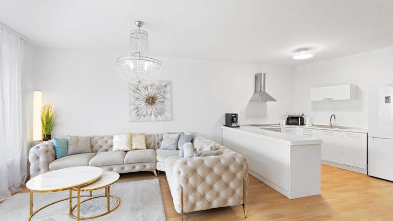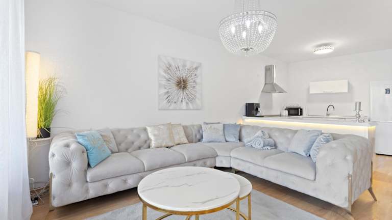 Das klimatisierte Apartment verfügt über 2 komfortable Schlafzimmer, ein geräumiges Wohnzimmer und eine voll ausgestattete Küche. Die moderne Einrichtung und die hochwertige Ausstattung sorgen für einen angenehmen Aufenthalt. Das Apartment verfügt auch über einen Balkon, auf dem Sie die Aussicht auf die Stadt genießen können. Handtücher und Bettwäsche werden gestellt, um Ihnen den Aufenthalt so bequem wie möglich zu machen.