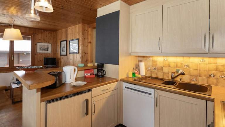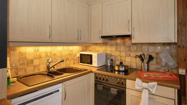 Die Ferienwohnung verfügt über zwei Schlafzimmer und ein Badezimmer mit Dusche. Eine gut ausgestattete Küche ist vorhanden, mit einem Kühlschrank und Geschirrspüler. Zur Ausstattung gehört auch ein TV mit Kabelkanälen. Es wird ein Babybett zur Verfügung gestellt, gegen Gebühr.