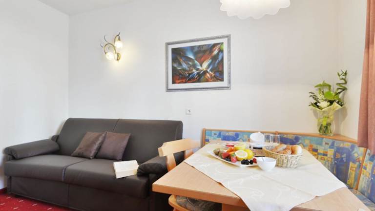 Das Apartment besteht aus einem Schlafzimmer und einem Wohnzimmer, das mit einem TV mit Satellitenkanälen ausgestattet ist. Eine voll ausgestattete Küche mit Kühlschrank und Geschirrspüler ist ebenfalls vorhanden. Das Badezimmer ist mit einer Dusche ausgestattet. Es stehen auf Anfrage Babystätten zur Verfügung.