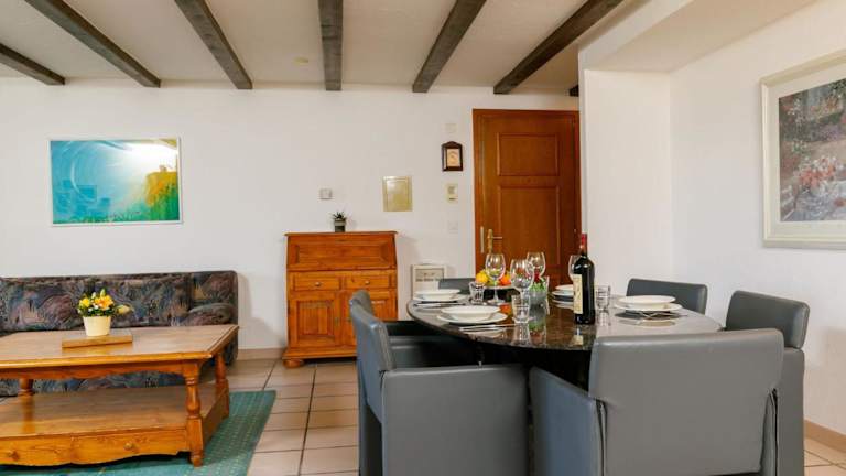 Die Ferienwohnung verfügt über ein Schlafzimmer, ein Wohnzimmer mit Flachbild-TV, eine gut ausgestattete Küche mit Kühlschrank und Geschirrspüler sowie ein Badezimmer mit Badewanne.