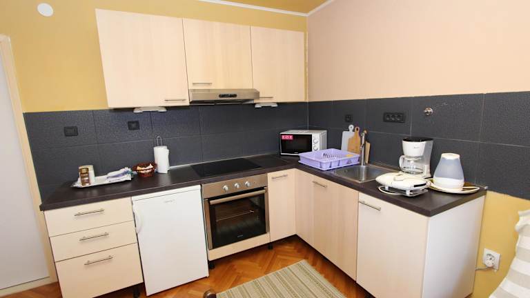 Die klimatisierte Ferienwohnung umfasst 2 Schlafzimmer, ein Wohnzimmer, eine voll ausgestattete Küche mit Kühlschrank und Wasserkocher sowie ein Badezimmer mit Bidet und Haartrockner. Handtücher und Bettwäsche werden zur Verfügung gestellt. Die Unterkunft bietet auch die Möglichkeit, einen Grill zu nutzen.