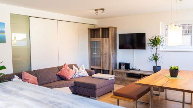 Das Apartment verfügt über ein Schlafzimmer, ein Wohnzimmer mit TV, eine gut ausgestattete Küche mit Kühlschrank und Ofen sowie ein Badezimmer mit Badewanne oder Dusche. Ein Babybett kann kostenlos zur Verfügung gestellt werden.