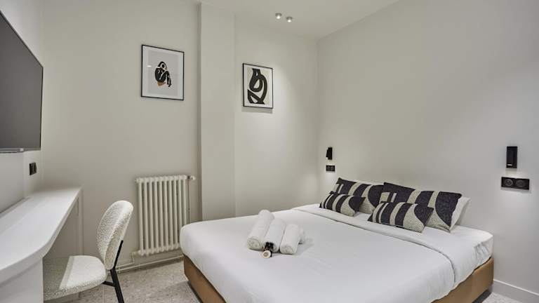 Das Apartment Sacre Coeur by Studio prestige bietet moderne Übernachtungsmöglichkeiten mit kostenlosem WLAN und einem Fernseher. Die Wohnung ist klimatisiert und umfasst zwei Schlafzimmer, ein Wohnzimmer sowie zwei Badezimmer.