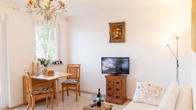Die Ferienwohnung besteht aus 1 Schlafzimmer, einem TV mit Kabelkanälen, einer gut ausgestatteten Küchenzeile mit Kühlschrank und Geschirrspüler sowie einem Badezimmer mit Dusche.