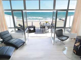 Das Appartement Seestern A ist eine moderne Ferienwohnung mit Balkon, die Meerblick bietet und über eine Terrasse verfügt.
