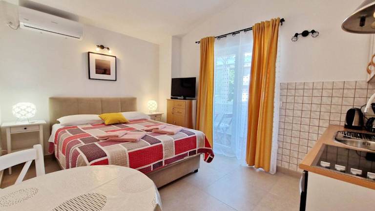 Die klimatisierten Wohneinheiten im Apartment Sersic sind komfortabel und gut ausgestattet. Jede Einheit verfügt über einen eigenen Balkon, auf dem Sie entspannen und die frische Luft genießen können. Ein TV sorgt für Unterhaltung und das private Badezimmer ist mit einer Dusche und einem Haartrockner ausgestattet. Die Küche bietet alle Annehmlichkeiten, die Sie benötigen, einschließlich Kühlschrank, Backofen, Mikrowelle und Wasserkocher.