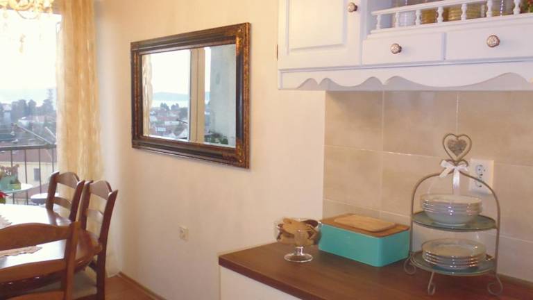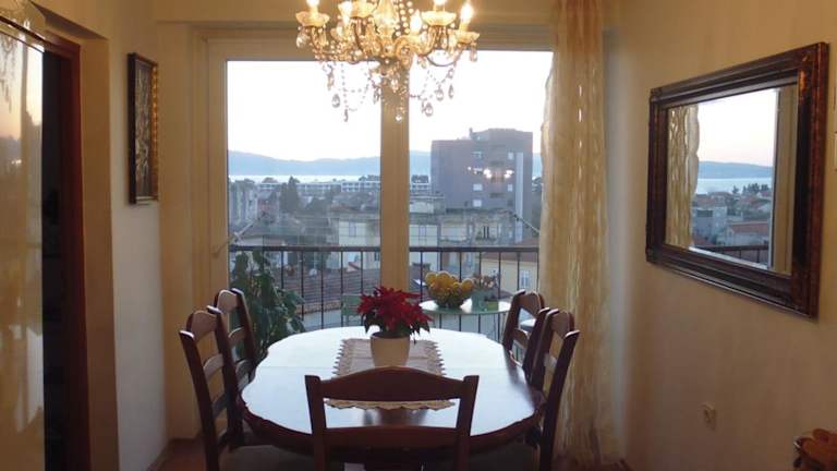 Das Apartment Sime bietet 2 geräumige Schlafzimmer und 1 Badezimmer. Die Zimmer sind mit Bettwäsche und Handtüchern ausgestattet und bieten einen komfortablen Rückzugsort nach einem Tag am Strand. Im Wohnbereich finden Sie einen Flachbild-Sat-TV und einen Essbereich, wo Sie Ihre Mahlzeiten einnehmen können. Die voll ausgestattete Küche ermöglicht es Ihnen, Ihre eigenen Mahlzeiten zuzubereiten und auf dem Balkon mit Stadtblick zu genießen.
