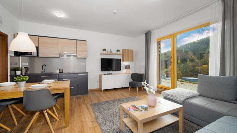 Apartment Portášky- Velká Úpa 3 by Interhome bietet eine Terrasse und verfügt über kostenfreies WLAN. Ein Privatparkplatz kann gegen Aufpreis arrangiert werden. Die Unterkunft ermöglicht einen direkten Zugang zur Skipiste und bietet einen Skiausrüstungsverleih vor Ort.