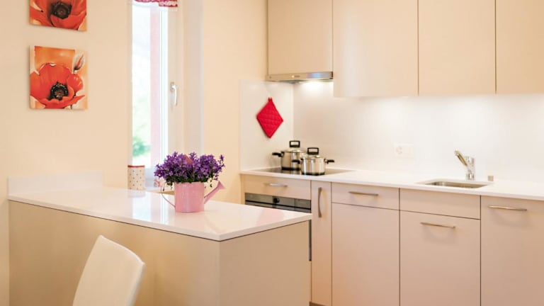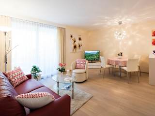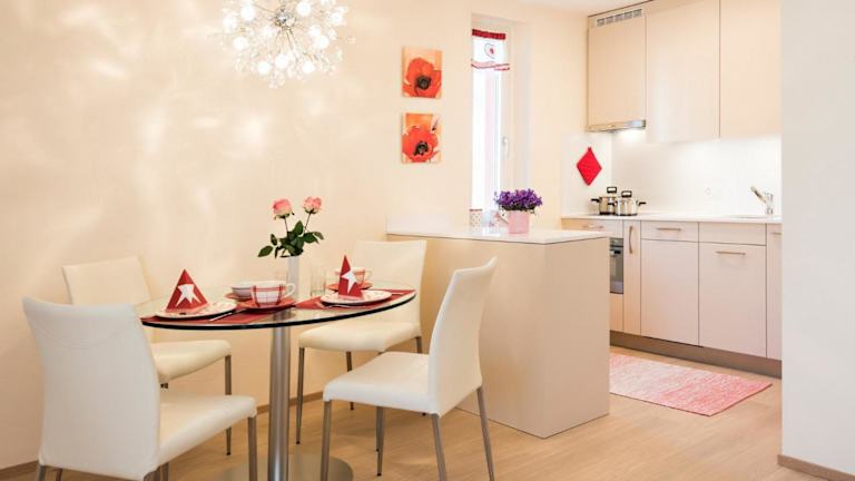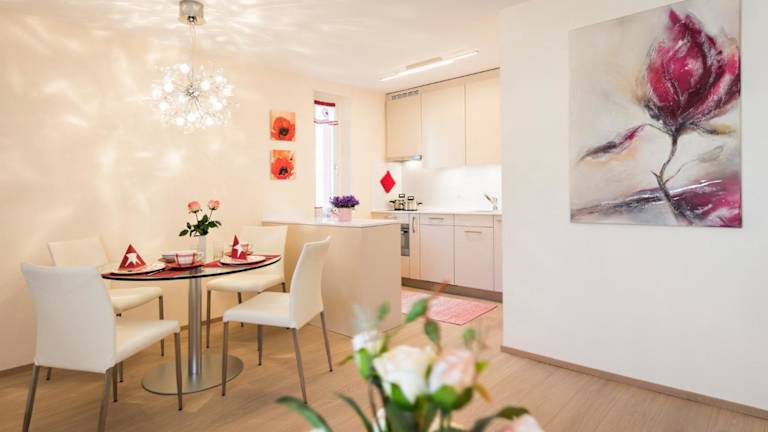 Die Ferienwohnung verfügt über ein Schlafzimmer, ein Wohnzimmer, einen TV sowie eine gut ausgestattete Küche mit Kühlschrank und Geschirrspüler. Des Weiteren ist ein Badezimmer mit Dusche vorhanden. Handtücher und Bettwäsche werden bereitgestellt.