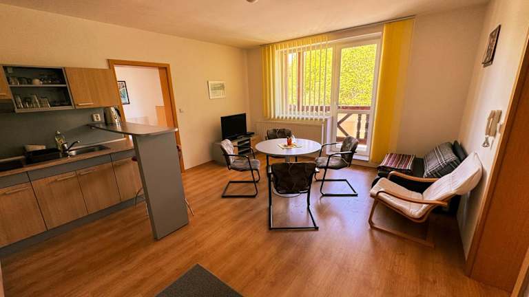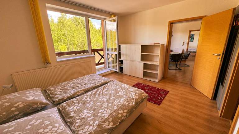 Die Apartments im Apartmány Slavkov sind komplett möbliert und verfügen über 2 Schlafzimmer sowie einen Wohnbereich mit einer Küchenzeile, einem Esstisch und Sat-TV. Jedes Apartment hat einen eigenen Balkon mit Blick auf die Hohe Tatra. Ein eigenes Bad mit Dusche, Badewanne und WC sowie ein zusätzliches WC sind ebenfalls vorhanden. WLAN steht Ihnen kostenlos zur Verfügung.