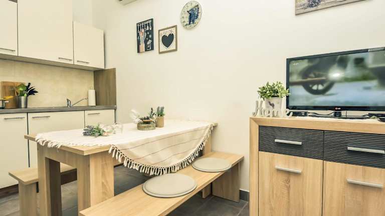 Das Apartment Snježana-2 by Interhome bietet eine komfortable und gut ausgestattete Ferienwohnung mit Klimaanlage. Die Unterkunft verfügt über einen Privatparkplatz, der auf Anfrage gegen Gebühr genutzt werden kann. Kostenloses WLAN ist in der Unterkunft verfügbar. Die Buchung erfordert eine Vorauszahlung des gesamten Buchungsbetrags, der detailliert in einer Bestätigung mit Zahlungsinformationen angegeben wird.