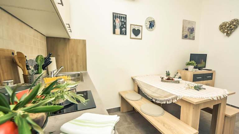 Das Apartment hat ein Schlafzimmer und ist mit einem Wohnzimmer ausgestattet, welches mit einem Fernseher mit Satellitenkanälen ausgestattet ist. Eine voll ausgestattete Küche mit Kühlschrank und Herdplatte ist ebenfalls vorhanden. Das Badezimmer ist mit einer Dusche ausgestattet. Für Familien stehen kostenfrei ein Babybett zur Verfügung. Die Unterkunft ist vollständig Nichtraucherbereich.