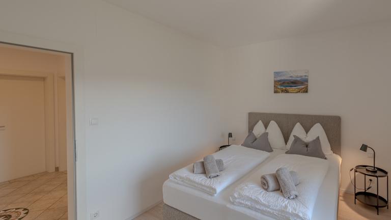 Das Apartment beinhaltet zwei Schlafzimmer, ein Badezimmer, Bettwäsche, Handtücher, einen TV mit Satellitenkanälen und eine voll ausgestattete Küche.