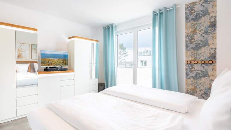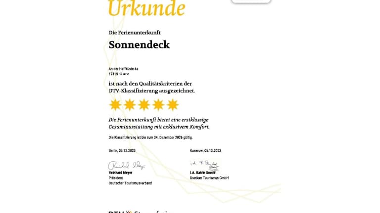 Apartment "Sonnendeck" - Haffresidenz bietet Übernachtungsmöglichkeiten in einer gut ausgestatteten Ferienwohnung. Zur Ausstattung gehören ein kostenloser Privatparkplatz und eine Sauna. Die Unterkunft ist rauchfrei und erlaubt keine Junggesellen-/Junggesellinnenabschiede oder ähnliche Feiern. Der Check-in ist ab 16:00 Uhr und der Check-out bis 10:00 Uhr möglich.