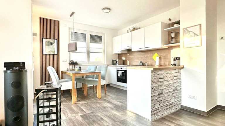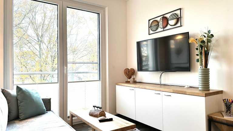 Die Ferienwohnung verfügt über ein Schlafzimmer, ein Wohnzimmer, eine voll ausgestattete Küche mit Kühlschrank und Kaffeemaschine sowie ein Badezimmer mit Dusche und Haartrockner. Handtücher und Bettwäsche werden bereitgestellt. Die Zimmer sind schallisoliert und Nichtraucherzimmer.