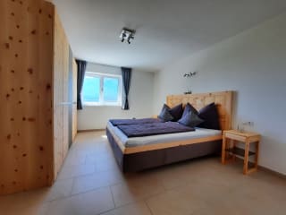 Die Ferienwohnung im 1. Obergeschoss bietet neben einer großzügigen Wohnküche, ausgestattet mit einer voll eingerichteten Küche, einer Bar mit Kaffeemaschine, einem Sofa mit TV und einem separaten Essbereich im Wintergarten noch 2 Schlafzimmer in Zirbe mit Berg- oder Gartenblick für einen rundum erholsamen Urlaub. Vom Wohnzimmer aus kommt man auf die große Terrasse mit gemütlicher Sitzgelegenheit, von wo man den herrlichen Ausblick genießen kann. Im geräumigen Bad mit Dusche und WC finden unsere Gäste einen Fön und genügend Handtücher für die Dauer des Aufenthaltes. Im Eingangsbereich befindet sich die Leseecke, dort gibt es für Jung und Alt verschiedene Spiele und Bücher zur freien Verwendung. Auch Babys und Kleinkinder sind herzlich willkommen, sowohl ein Gitterbett, als auch ein Hochstuhl sind vorhanden. Weiters verfügt die Unterkunft über einen überdachten Parkplatz und noch weiteren im Freien. Auch kostenloses WLan steht in der gesamten Wohnung zur Verfügung.