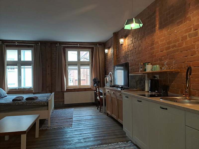 Die Unterkünfte im Hotel Staszica Starówka verfügen über eine voll ausgestattete Küche mit einem Kühlschrank und einem Kochfeld. Die Zimmer sind komfortabel eingerichtet und verfügen über einen Sitz- und einen Essbereich. Kostenloses WLAN und ein Flachbild-TV sorgen für zusätzlichen Komfort.