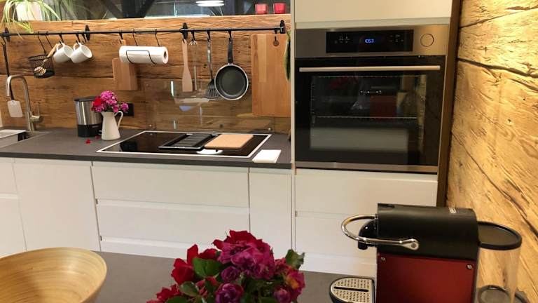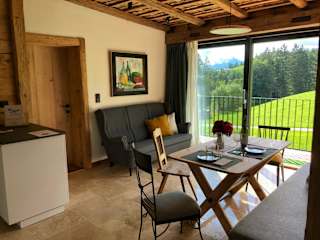 Die Ferienwohnung verfügt über ein Schlafzimmer, ein Badezimmer, Bettwäsche und Handtücher. Zur Ausstattung gehören ein Flachbild-TV mit Satellitenkanälen, ein Essbereich, eine voll ausgestattete Küche sowie ein Balkon mit Blick auf die Berge.