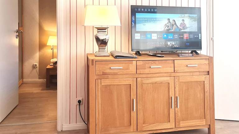 Das Strandliebe Apartment ist hell und gemütlich eingerichtet und verfügt über ein Wohn-/Esszimmer und ein separates Schlafzimmer. Die voll ausgestattete Küche bietet Ihnen die Möglichkeit, Ihre eigenen Mahlzeiten zuzubereiten. Ein TV und ein eigenes Badezimmer mit Badewanne und Haartrockner sind ebenfalls vorhanden. Der nach Südwesten ausgerichtete Balkon lädt zum Entspannen und Sonnenbaden ein.