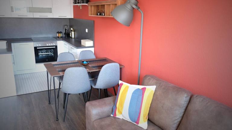 Die Ferienwohnung besteht aus einem Schlafzimmer, einem Wohnzimmer, einer voll ausgestatteten Küche mit Kühlschrank und Kaffeemaschine sowie einem Badezimmer mit Dusche und Haartrockner. Handtücher und Bettwäsche werden zur Verfügung gestellt. Die Unterkunft umfasst Nichtraucherzimmer und es gibt Zugang mit Schlüssel.