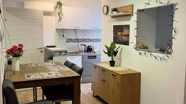Das Apartment Sun&Sea verfügt über ein modernes Schlafzimmer, eine voll ausgestattete Küche mit Kühlschrank und Geschirrspüler sowie ein komfortables Badezimmer mit Dusche. Das Apartment bietet zudem einen Flachbild-TV und einen gemütlichen Sitzbereich, in dem Gäste entspannen können. Handtücher und Bettwäsche werden gestellt, um den Aufenthalt so angenehm wie möglich zu gestalten.