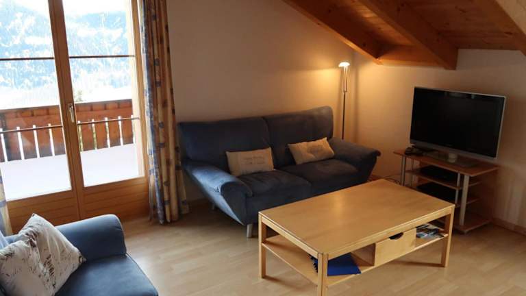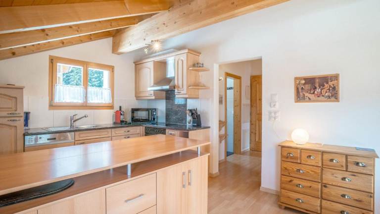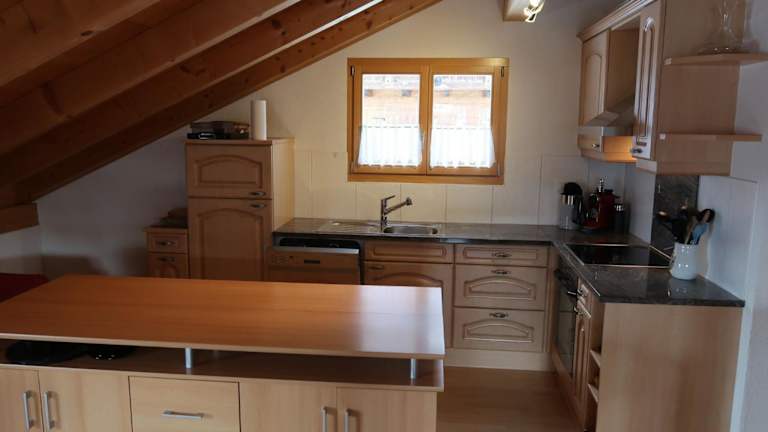 Die Ferienwohnung verfügt über 2 Schlafzimmer, ein Wohnzimmer, einen TV sowie eine gut ausgestattete Küche mit Kühlschrank und Geschirrspüler. Zudem gibt es ein Badezimmer mit Dusche und einen Balkon mit Bergblick.