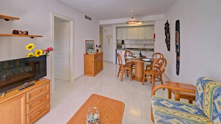 Das Apartment Topacio III-2 by Interhome ist eine Ferienwohnung direkt am Strand, die eine Terrasse sowie einen kostenlosen Privatparkplatz bietet. Zur Ausstattung gehören kostenfreies WLAN und Klimaanlage. Das Apartment bietet ein Schlafzimmer, ein Wohnzimmer und eine voll ausgestattete Küche mit Kühlschrank und Kaffeemaschine. Ein Badezimmer mit Badewanne oder Dusche und Haartrockner ist ebenfalls vorhanden. Die Unterkunft verfügt über einen TV.