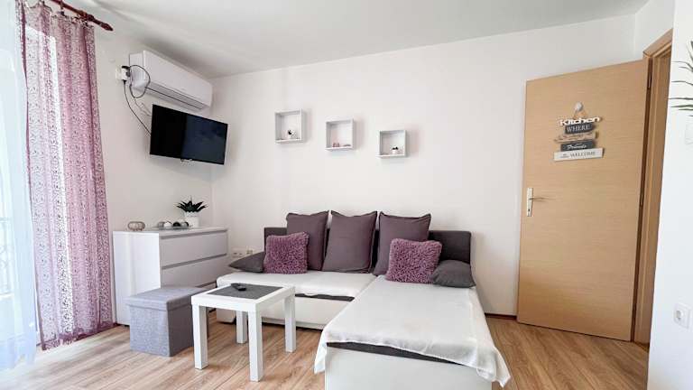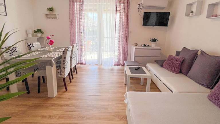 Das Apartment Tuba bietet eine Unterkunft mit Balkon und besteht aus einem Schlafzimmer, einem Wohnzimmer sowie einer voll ausgestatteten Küche. Die Ferienwohnung verfügt über Klimaanlage, ein Badezimmer mit Dusche und bietet einige Annehmlichkeiten wie kostenloses WLAN und einen privaten Parkplatz.