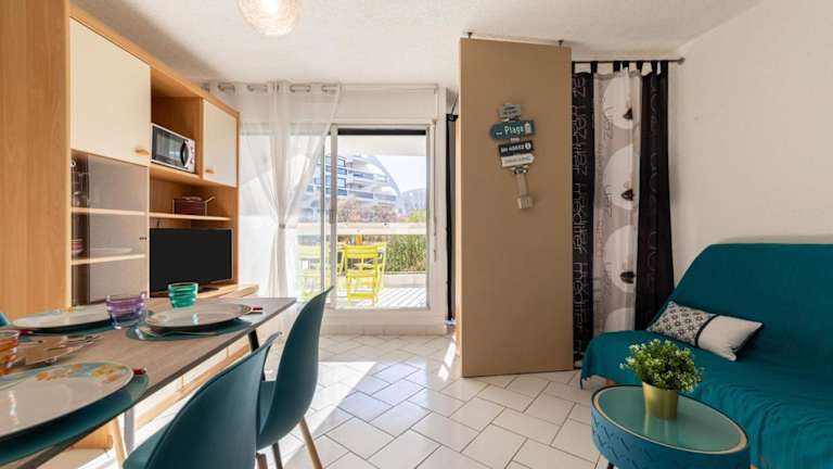 Die Unterkunft befindet sich in La Grande-Motte, in unmittelbarer Nähe zum Strand Plage du Couchant und etwa 12 km vom Parc des Expositions de Montpellier entfernt. Der Flughafen Montpellier Méditerranée ist 21 km entfernt und gut erreichbar.