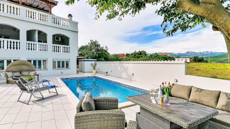Das Apartment Valentina-1 besticht durch seine hervorragende Lage direkt am Strand Vrulja. Von der Terrasse aus können Sie den atemberaubenden Meerblick genießen. Der Strand Bukva ist ebenfalls in der Nähe und lädt zum Entspannen und Sonnenbaden ein. Der Yachthafen Kornati ist eine weitere Attraktion, die Sie besuchen können. Der Flughafen Zadar ist nur 22 km entfernt und bietet eine bequeme Anreisemöglichkeit.