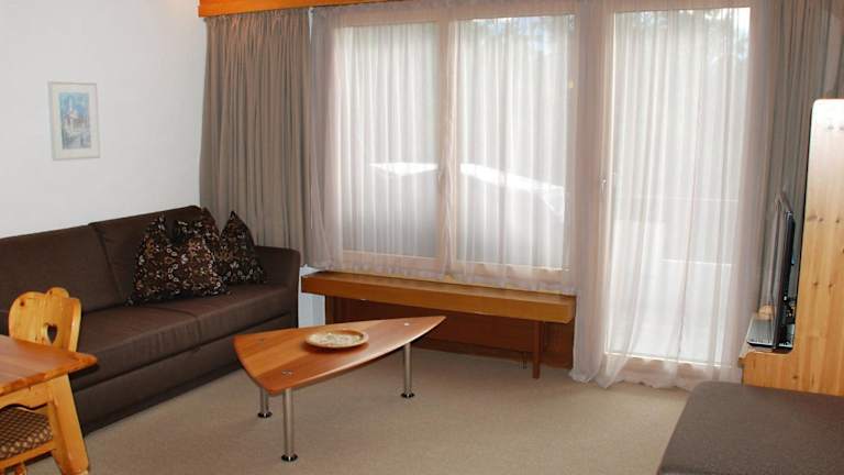 Die Ferienwohnung verfügt über ein Schlafzimmer, ein Wohnzimmer mit TV sowie eine gut ausgestattete Küche, die mit einem Kühlschrank und einem Geschirrspüler ausgestattet ist. Zusätzlich gibt es ein Badezimmer mit Badewanne und einen Balkon mit Bergblick.