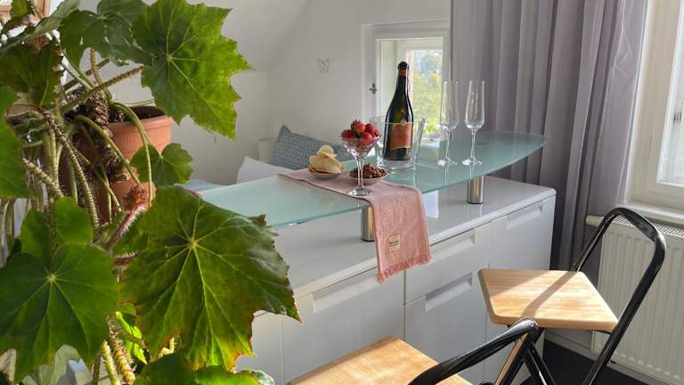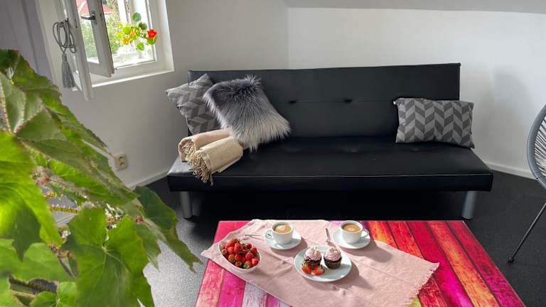 Die Ferienwohnung umfasst 1 Schlafzimmer, 1 Wohnzimmer, ein Badezimmer mit Dusche und kostenlosen Pflegeprodukten. Handtücher und Bettwäsche werden zur Verfügung gestellt.