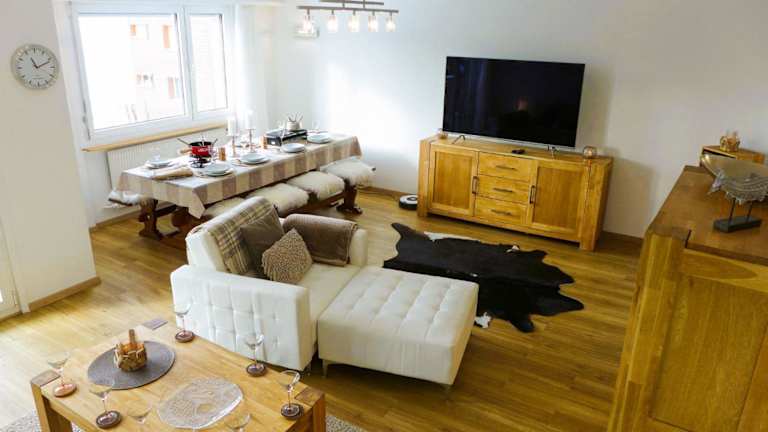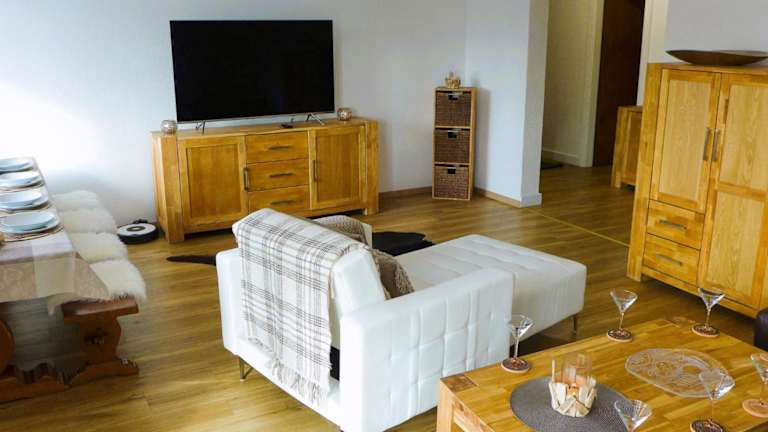 Die Ferienwohnung ist mit einem Kabel Flachbild-TV, einer gut ausgestatteten Küche mit Kühlschrank, Geschirrspüler und Ofen sowie 2 Badezimmern mit Dusche und Haartrockner ausgestattet.