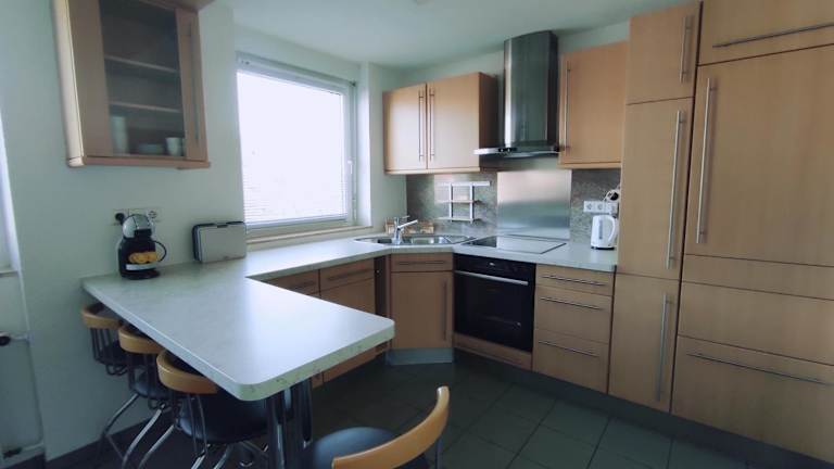 Eine gut ausgestattete Küche mit Kühlschrank und Geschirrspüler ist im Apartment vorhanden, jedoch sind keine spezifischen Verpflegungsmöglichkeiten angegeben.