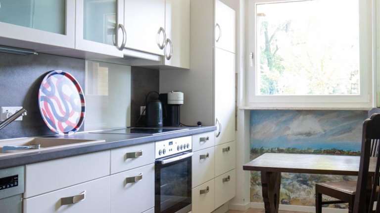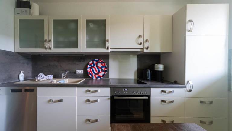 Die Ferienwohnung besteht aus einem Wohnbereich mit einem TV und einer gut ausgestatteten Küche, die mit einem Kühlschrank, Geschirrspüler, Ofen sowie einer Kaffeemaschine und einem Wasserkocher ausgestattet ist. Ein Kinderspielplatz steht den Gästen ebenfalls zur Verfügung.