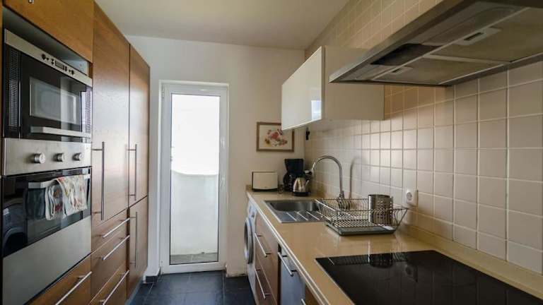 Die Ferienwohnung verfügt über zwei klimatisierte Schlafzimmer, einen Essbereich und eine vollständig ausgestattete Küche mit Kühlschrank. Handtücher und Bettwäsche sind in der Unterkunft vorhanden.