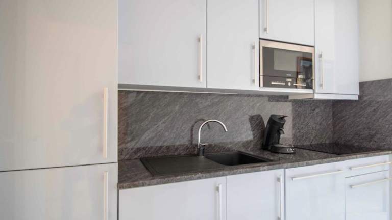 Die Wohnung umfasst zwei Schlafzimmer und ist mit einer Küche ausgestattet, die über einen Kühlschrank und einen Geschirrspüler verfügt. Es gibt zwei Badezimmer, die jeweils mit einer Badewanne oder Dusche sowie einem Haartrockner ausgestattet sind. Weiterhin ist eine Waschmaschine vorhanden. Ein TV ist ebenfalls Teil der Ausstattung.
