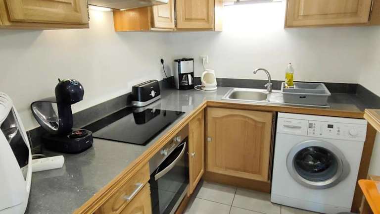 Die Ferienwohnung umfasst zwei Schlafzimmer, ein Wohnzimmer und eine voll ausgestattete Küche mit Kühlschrank und Kaffeemaschine. Des Weiteren steht ein Badezimmer mit Badewanne und Haartrockner zur Verfügung. Handtücher und Bettwäsche können auf Wunsch gegen Aufpreis bereitgestellt werden.