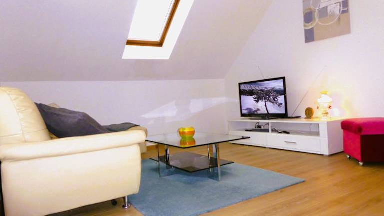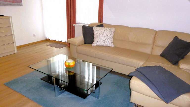 Die Wohnung ist ausgestattet mit einem Schlafzimmer, einem Wohnzimmer und einer voll ausgestatteten Küchenzeile, die einen Kühlschrank sowie einen Geschirrspüler umfasst. Zur Ausstattung gehört auch ein Badezimmer.