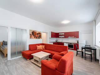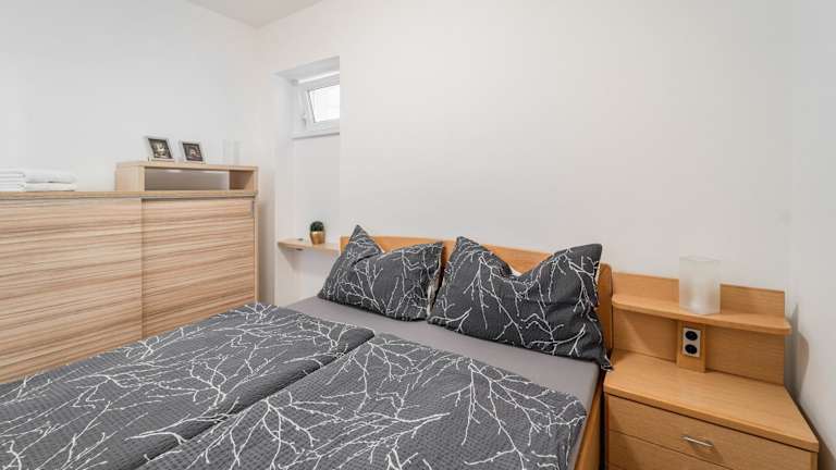 Das Apartment umfasst 1 Schlafzimmer, ein Wohnzimmer, eine vollständige Küchenzeile mit Kühlschrank und Kaffeemaschine sowie ein Badezimmer mit Dusche. Bettwäsche und Handtücher werden bereitgestellt.