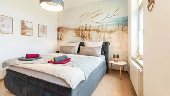 Die Ferienwohnung beinhaltet ein Schlafzimmer, ein Wohnzimmer sowie eine gut ausgestattete Küche. Der Balkon lädt zum Entspannen ein.