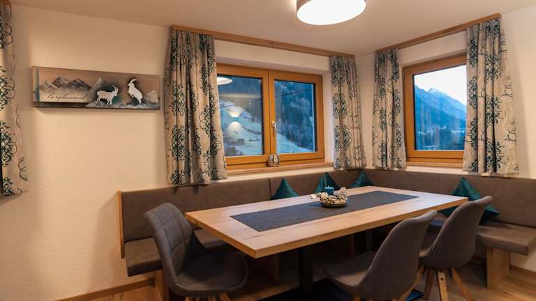 Das Apartment im Burgner Haus verfügt über 4 Schlafzimmer und 3 Badezimmer, sodass genügend Platz für Familien oder Gruppen von Freunden vorhanden ist. Die Zimmer sind mit Bettwäsche und Handtüchern ausgestattet. Zur weiteren Ausstattung gehören ein Flachbild-Sat-TV, ein Essbereich und eine voll ausgestattete Küche, in der Sie Ihre eigenen Mahlzeiten zubereiten können. Auf der Terrasse können Sie den Blick auf die umliegende Berglandschaft genießen. Eine Skiaufbewahrung steht Ihnen ebenfalls zur Verfügung.