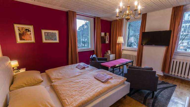 Die Zimmer in der Pension Menge sind modern und komfortabel eingerichtet und bieten alle Annehmlichkeiten, die Sie für einen angenehmen Aufenthalt benötigen. Jedes Zimmer verfügt über einen Flachbild-Sat-TV, der Ihnen Unterhaltungsmöglichkeiten bietet. Einige Zimmer verfügen auch über einen separaten Sitzbereich, in dem Sie sich nach einem erlebnisreichen Tag entspannen können. Ein Wasserkocher steht Ihnen auf Ihrem Zimmer zur Verfügung, so dass Sie sich jederzeit eine Tasse Tee oder Kaffee zubereiten können. Kostenloses WLAN ist in allen Bereichen verfügbar, so dass Sie immer mit Ihren Lieben in Verbindung bleiben können. Privatparkplätze am Haus bieten Ihnen Komfort und Bequemlichkeit während Ihres Aufenthalts.