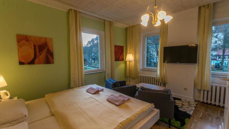 Die Pension Menge befindet sich in Bad Schandau, einer charmanten Stadt inmitten der beeindruckenden Landschaft des Nationalparks Sächsische Schweiz. Die Unterkunft liegt in einer ruhigen Umgebung und bietet gleichzeitig eine gute Anbindung an die umliegenden Sehenswürdigkeiten und Aktivitäten. Der Nationalpark Sächsische Schweiz ist nur 700 m entfernt, ideal für Naturliebhaber und Wanderer. Die Toskana Therme Bad Schandau, ein beliebtes Wellnesszentrum, erreichen Sie nach nur 500 m. Der Flughafen Dresden ist 36 km entfernt und bietet eine bequeme Anreisemöglichkeit.